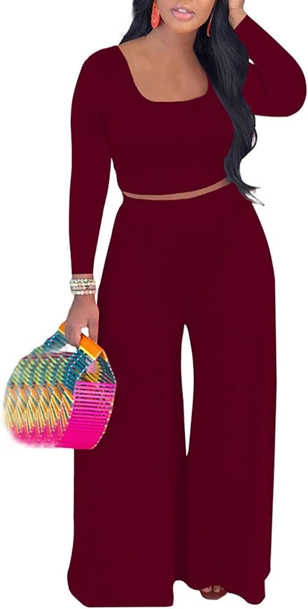 2 Piece Outfits for Women Casual Wide Leg Pants Set Outfits Sexy Front Crop Tops High Waist Jumpsuits Set