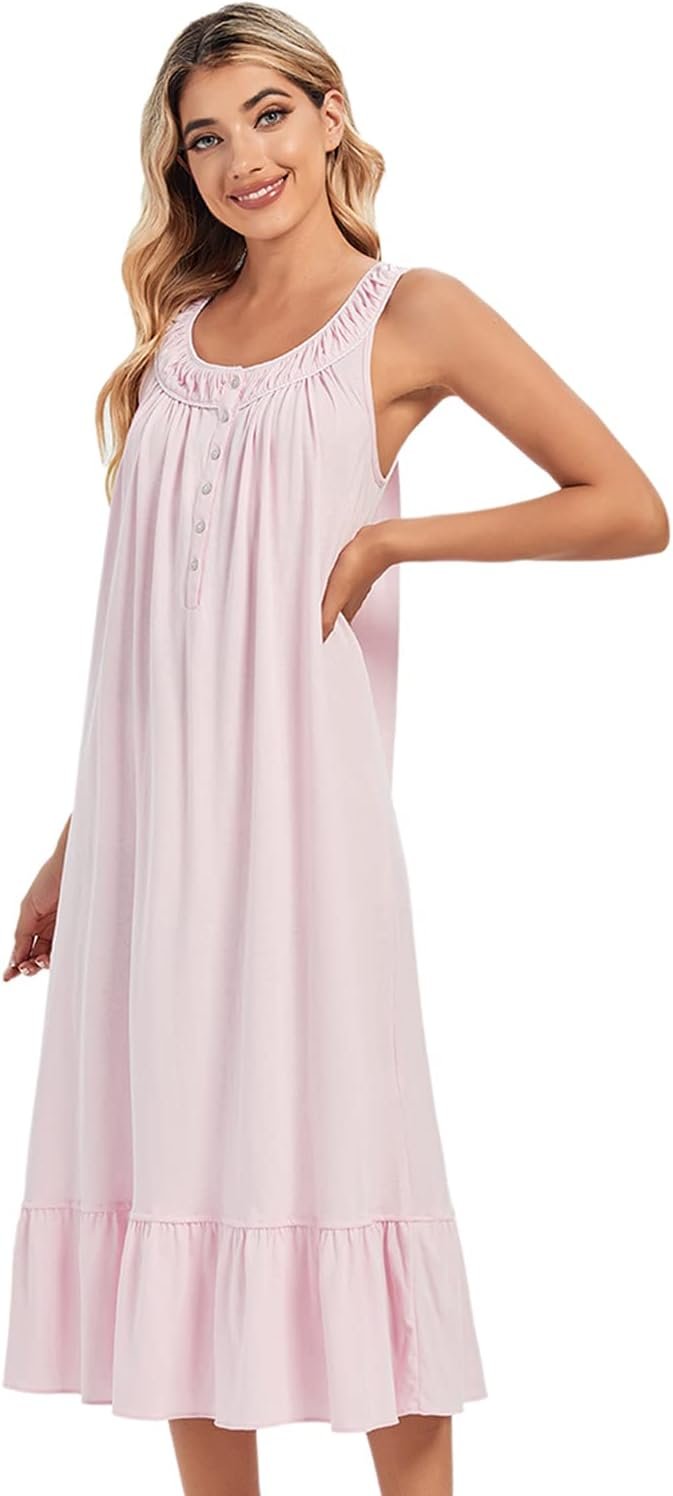 Cotton Nightgown for Women Sleeveless Loungewear Comfy Soft Sleepwear Long Sleepdress Loose Full Length Nightdress