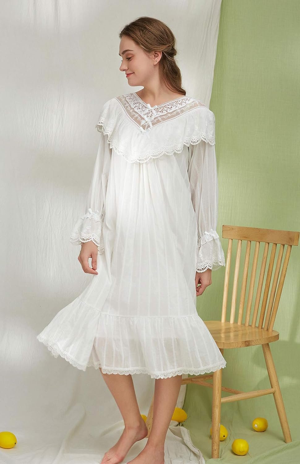 Cotton Nightgown for Women Vintage Palace Sleepwear