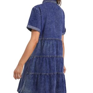 Denim Dress for Women Short Sl...