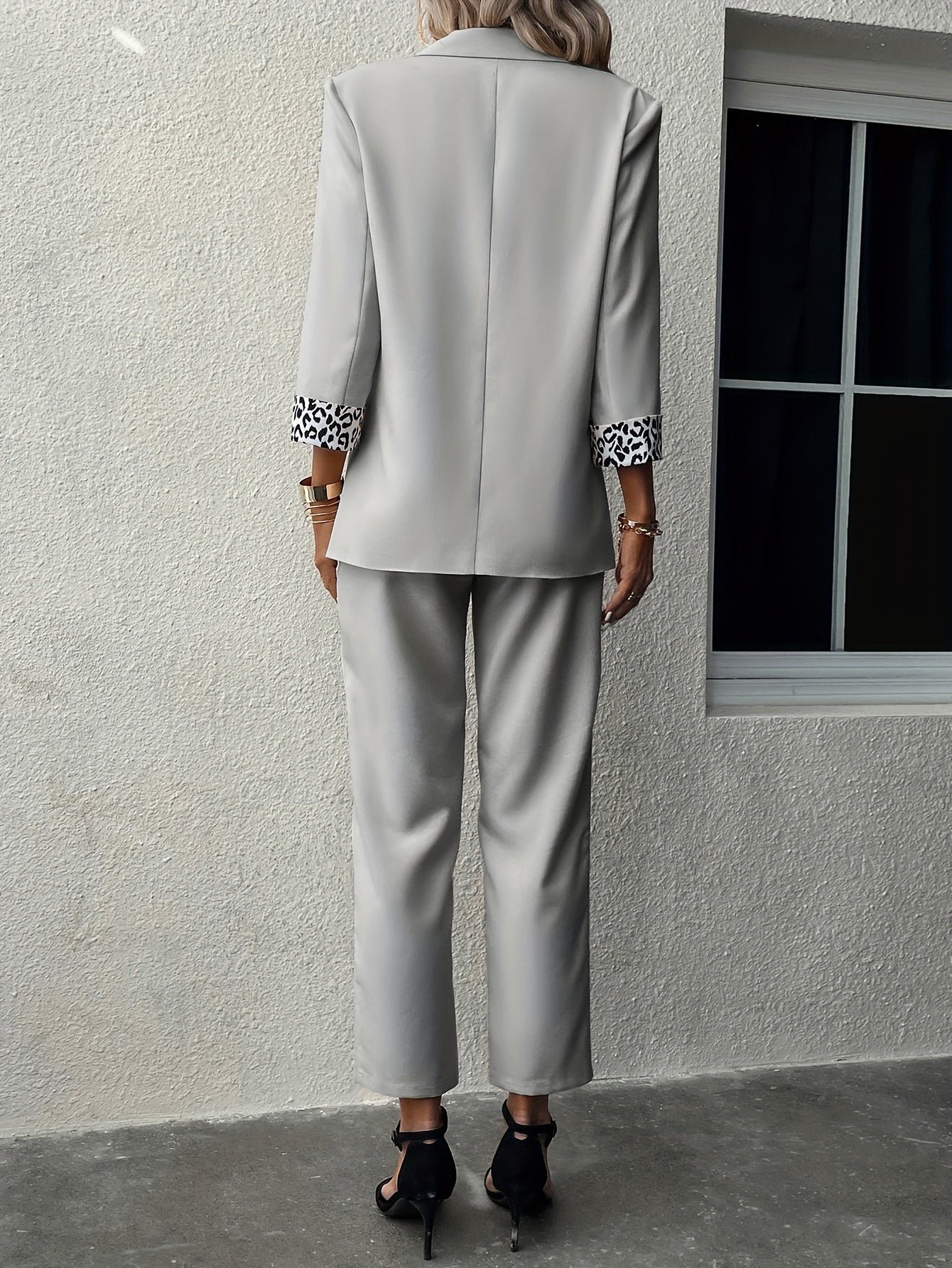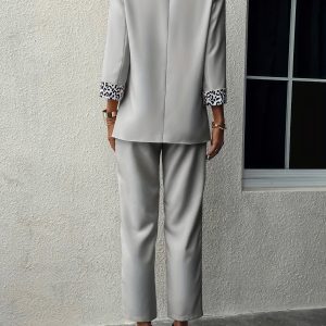 Be the first to review “Elegant Solid Color Pants Set, Single Breasted Lapel Balzer & High Waist Straight Leg Pants, Women’s Clothing”