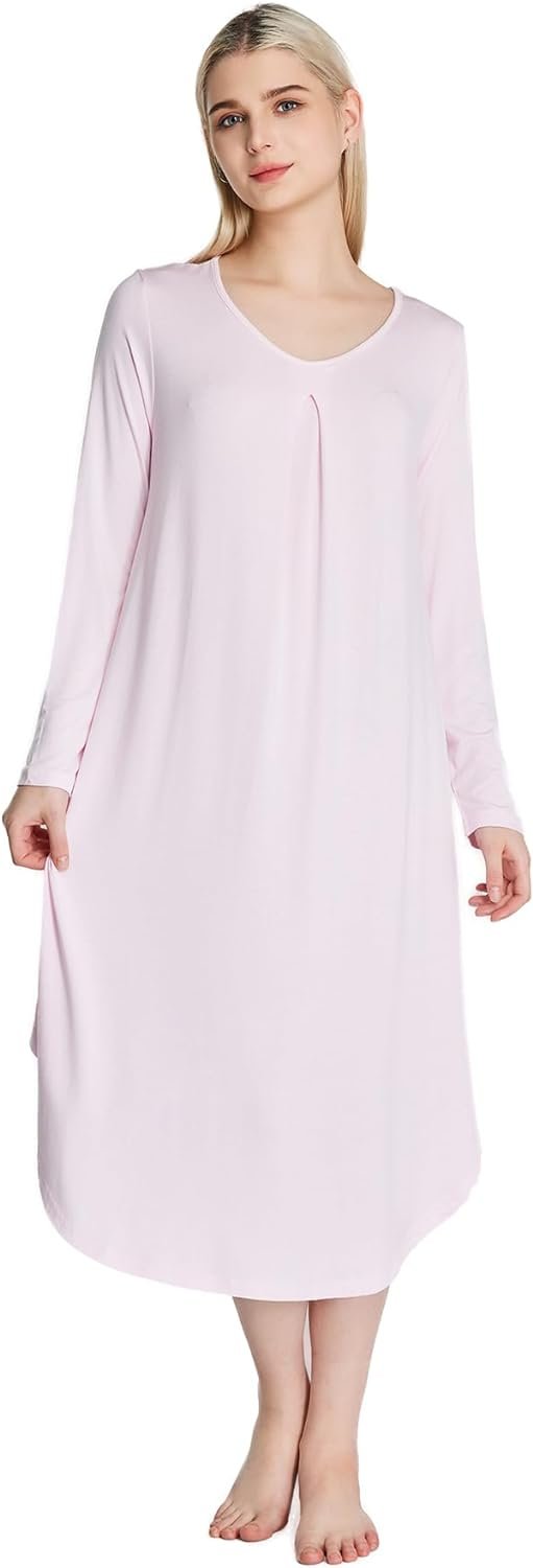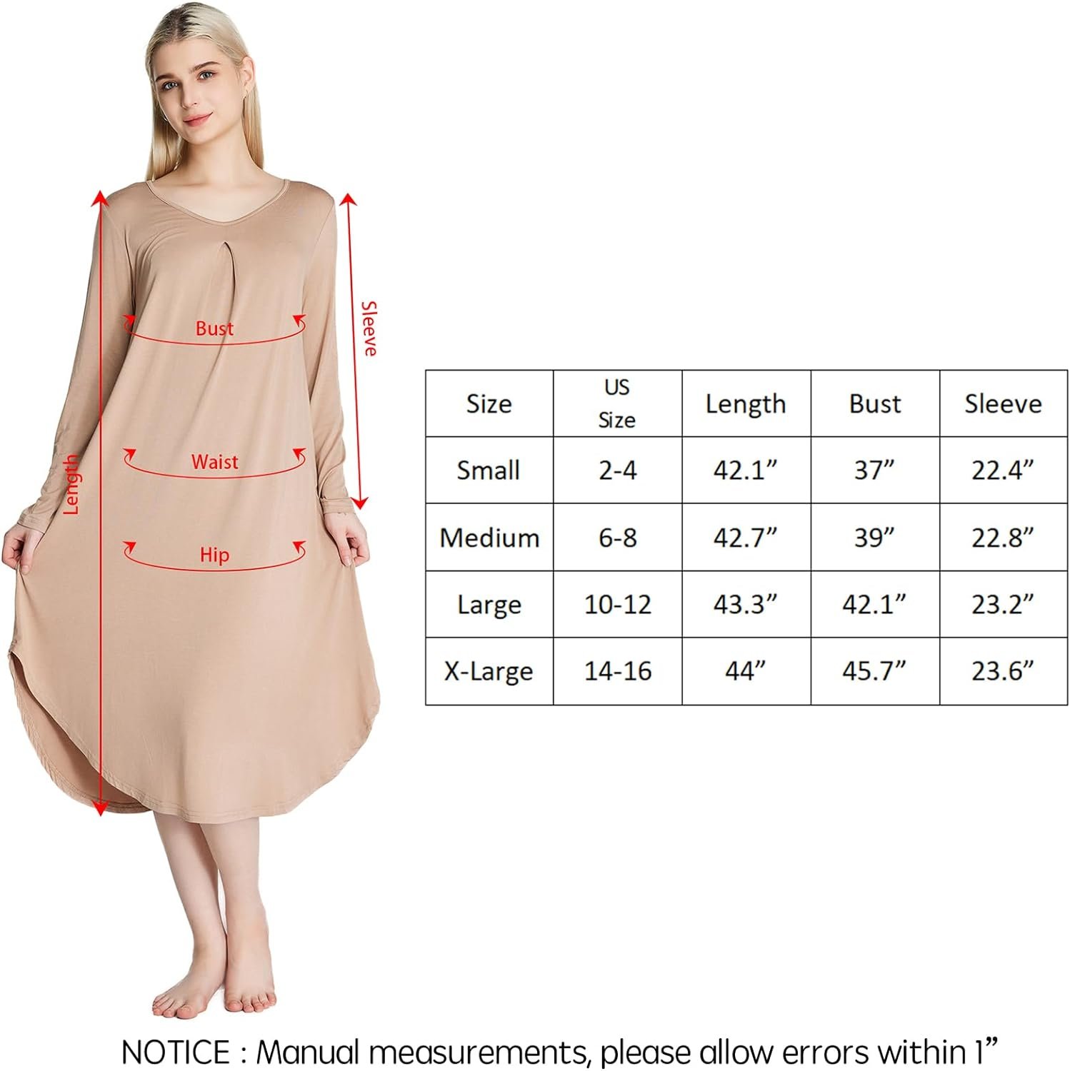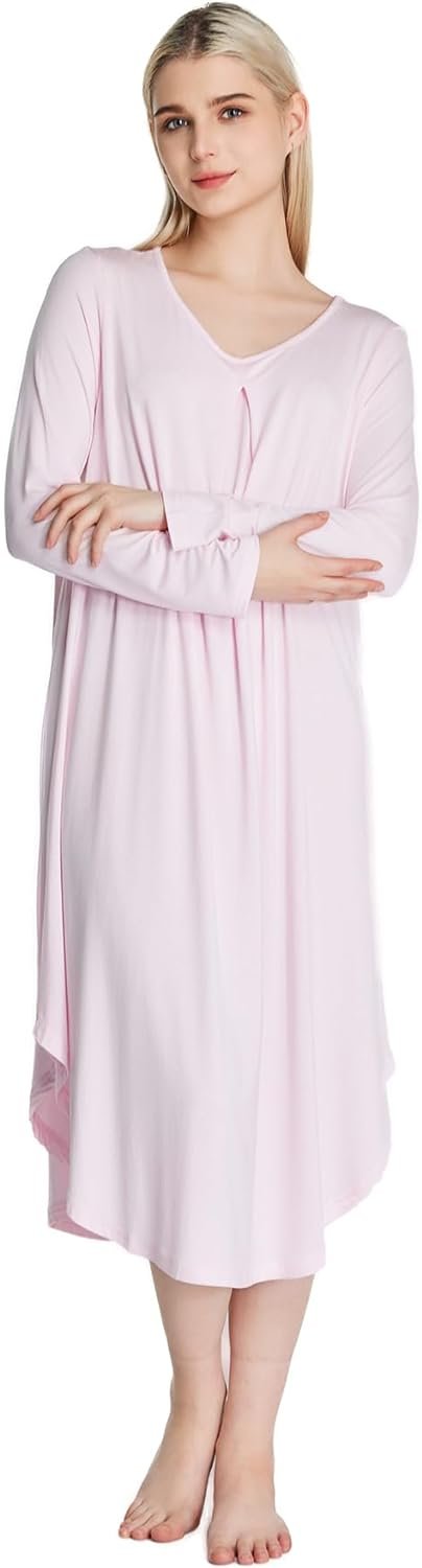 loungewear Womens Nightgown pajamas Bamboo Viscose Super Soft Long Sleeve sleepwear Nightdress Outdoor Wearable