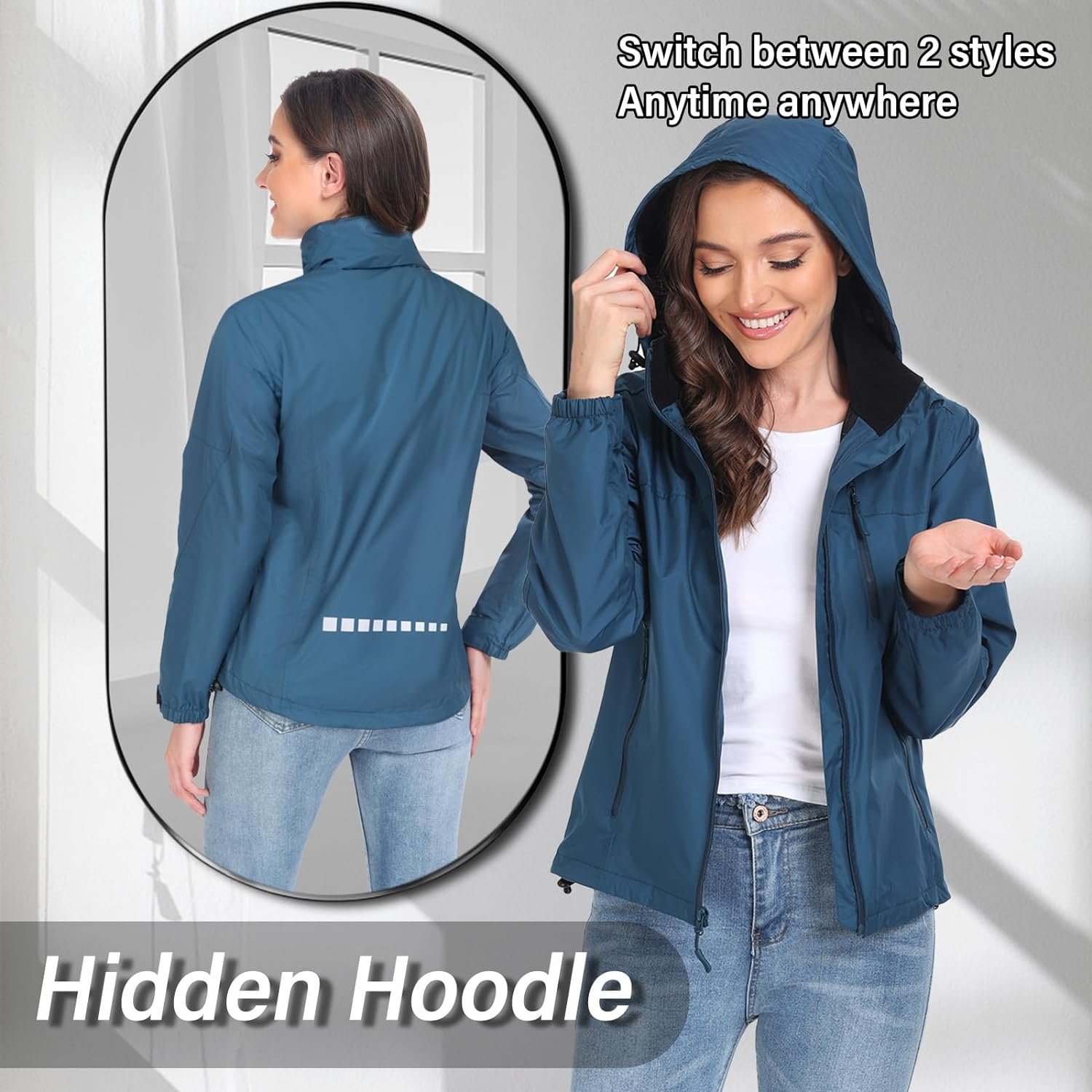 Packable Rain Jacket Women Lightweight Waterproof Raincoat for Women with Hood Windbreaker for Outdoor Travel Hiking
