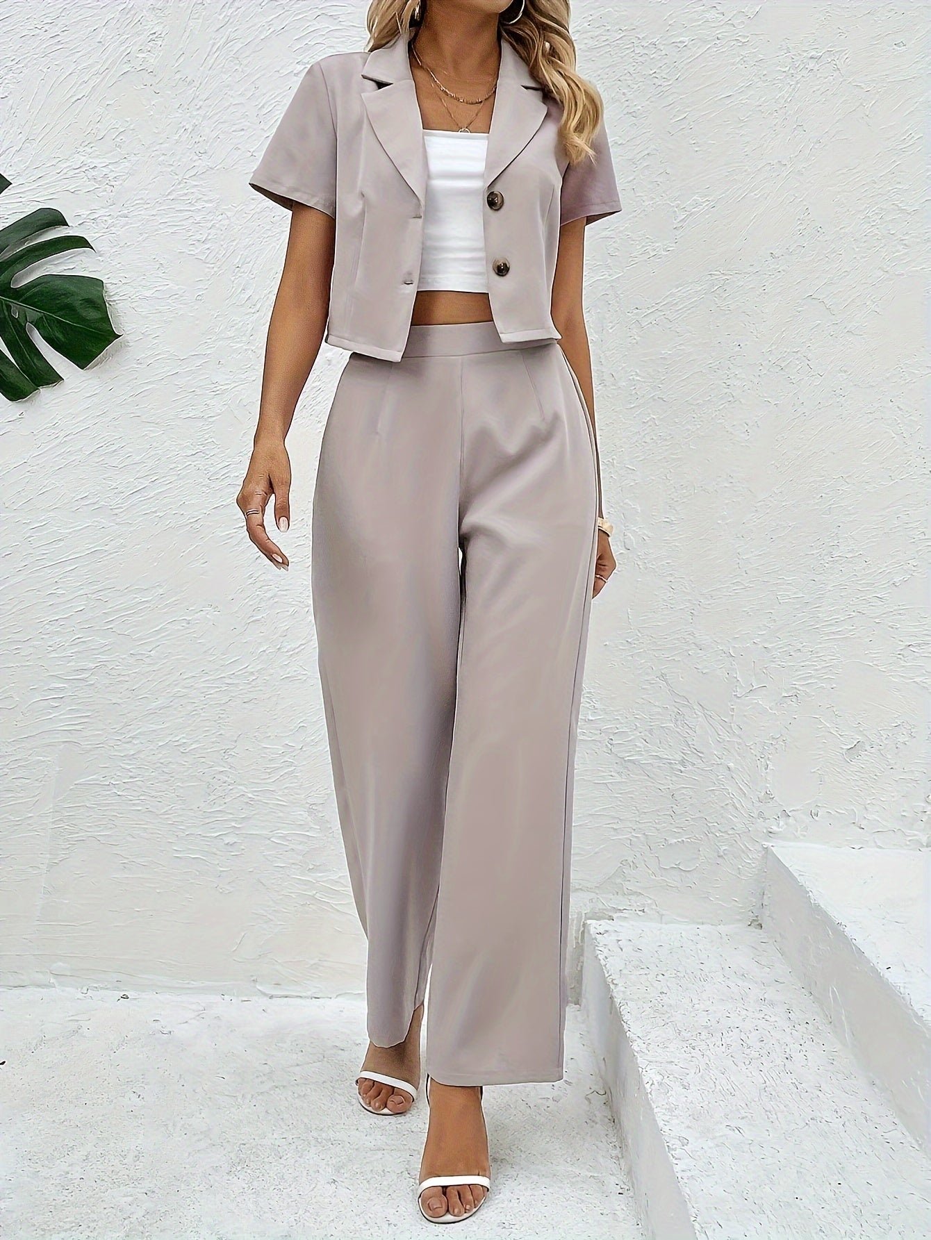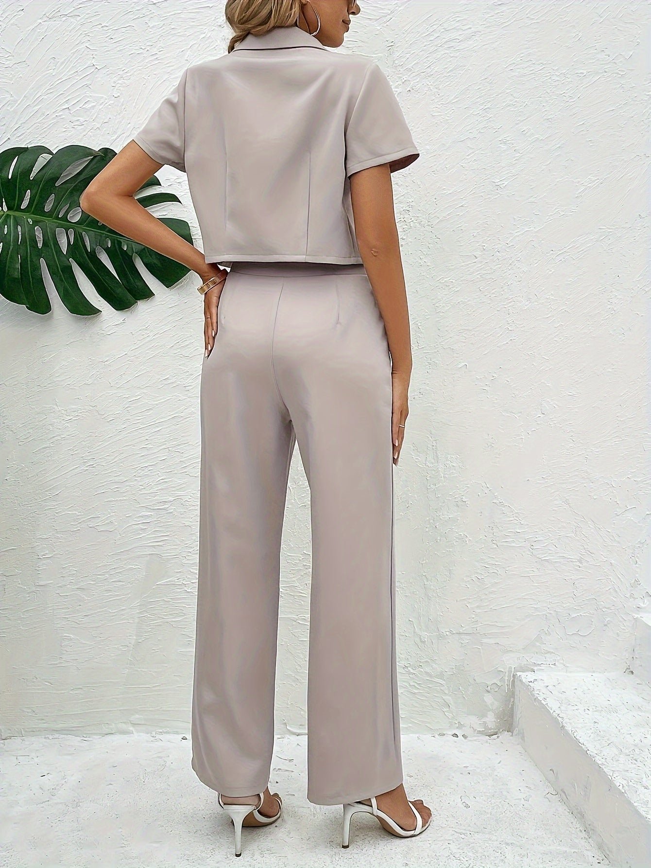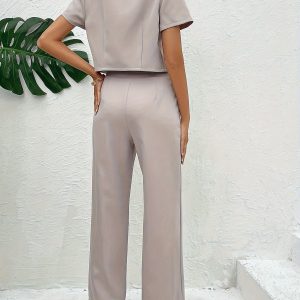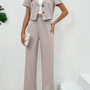 Be the first to review “Solid Color Botton Two Piece Blazer Set, Elegant Lapel Long Sleeve Blazer & Pants For Office & Work, Women’s Clothing”
