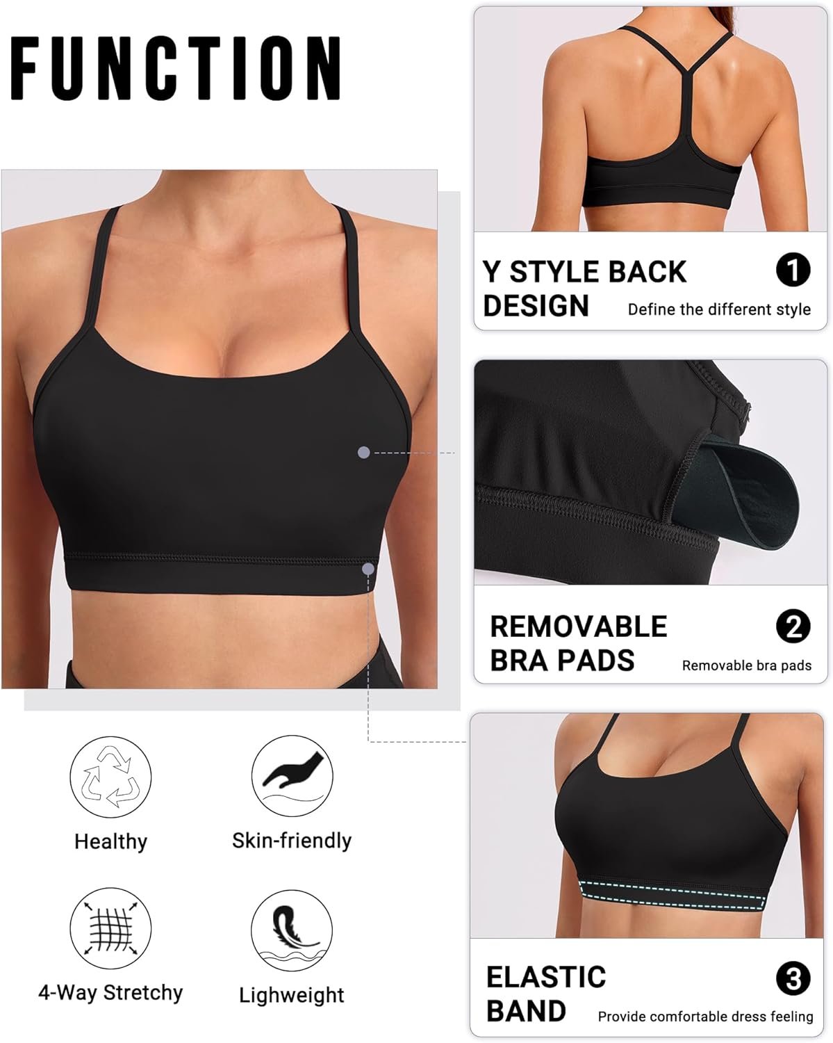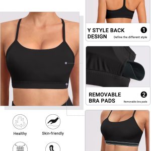 Spaghetti Strap Padded Sports Bras for Women – Y Back Yoga Workout Tops (3 Pack)