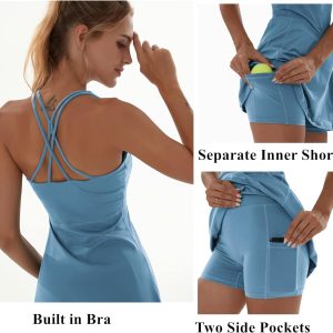 Tennis Dress for Women Workout Dress with Built-in Bra & Shorts Pockets Athletic Dress for Exercise Golf Dresses