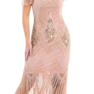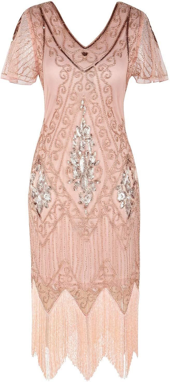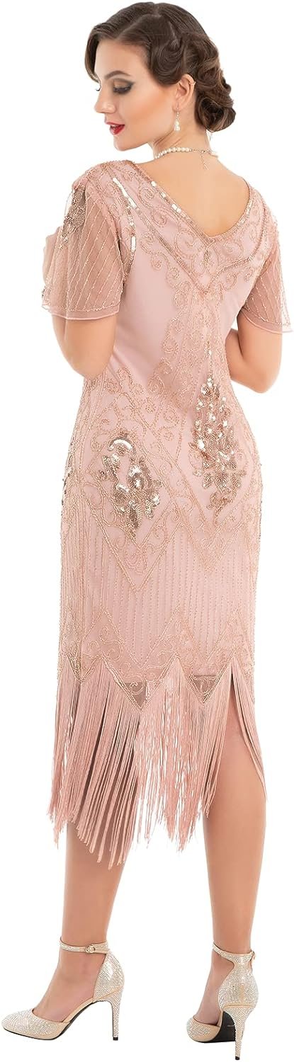 Women’s 1920s Dress Sequin Art Deco Flapper Dress with Sleeve