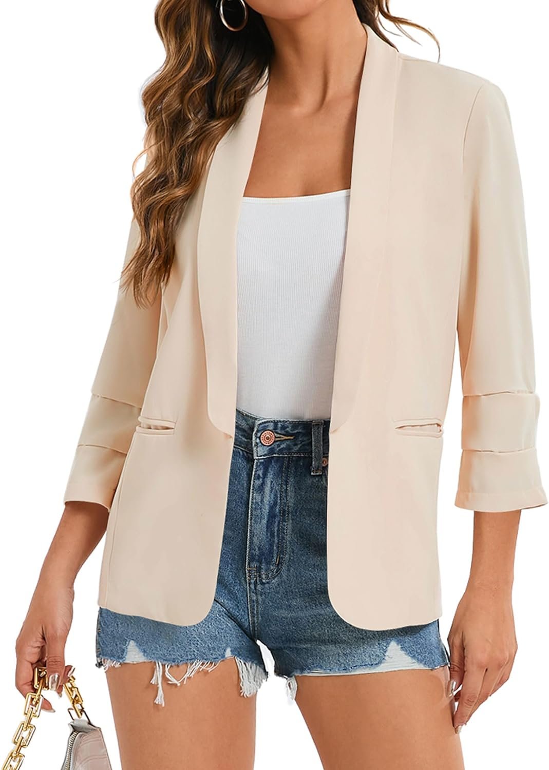Women’s 2024 Casual Blazers 3/4 Sleeves Lightweight Business Work Blazer Jackets with Pockets