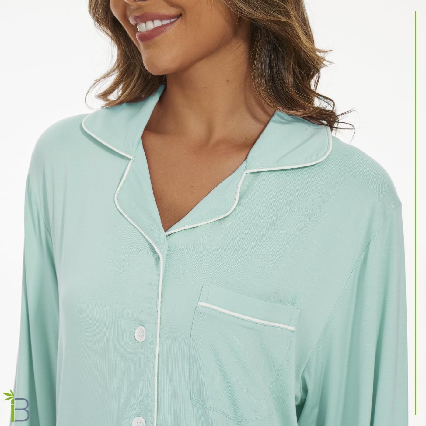 Womens Bamboo Pajama Set Long Sleeve Button Down, Soft Pj Pants with Pockets, Lightweight Sleepwear Loungewear