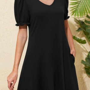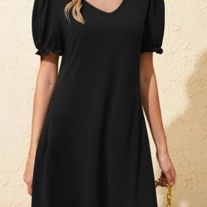 Be the first to review “Women’s Casual Dresses Puff Short Sleeve V-Neck Cocktail Dress with Pockets”