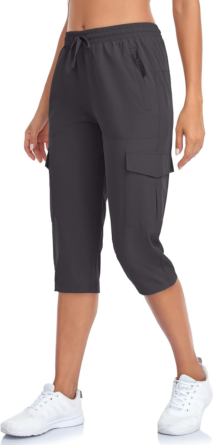 Women’s Hiking Cargo Capri Pants Lightweight Quick Dry Joggers Outdoor Casual Travel Capris with Zipper Pockets