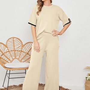Be the first to review “Womens Knit 2 Piece Sweater Sets Short Sleeve Pullover Tops Elastic Waist Wide Leg Pants Lounge Set”