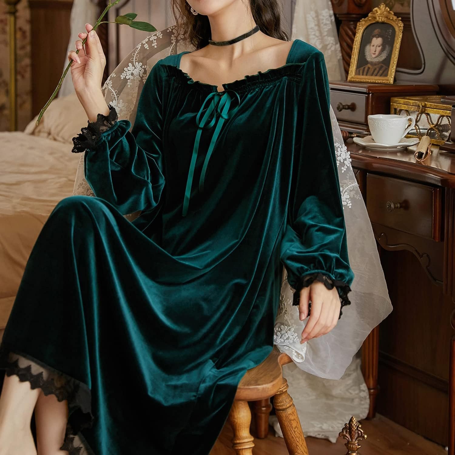 Be the first to review “Women’s Long Sleeve Nightgown Velvet Sleep Dress Ruffle Crew Neck Mid-length Nightdress”
