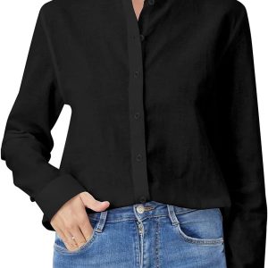 Be the first to review “Women’s Mandarin Collar Button-Down Shirts Casual Cotton Linen Long Sleeve Blouses”