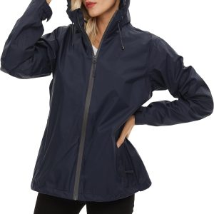 Women’s Rain Jacket Lightweight Waterproof Rain Coat with Hooded Windproof Adjustable Windbreaker