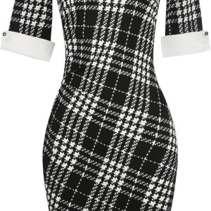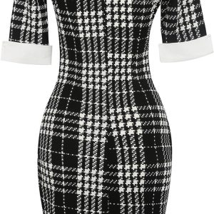 Be the first to review “Women’s Slim Fit Plaid Floral Printed Half Sleeve Formal Body-con Dress Pencil Dresses SK276”