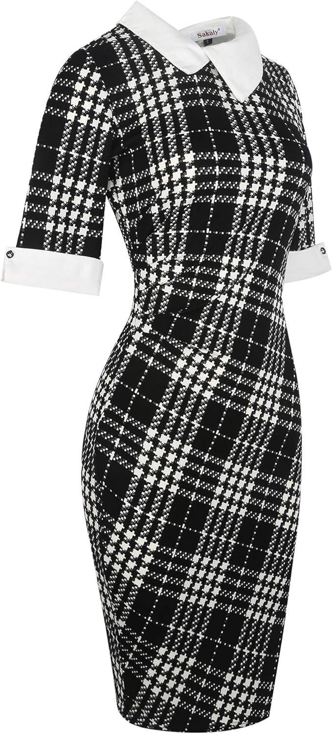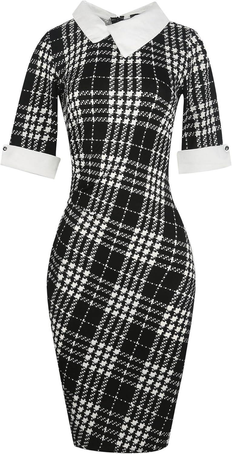 Women’s Slim Fit Plaid Floral Printed Half Sleeve Formal Body-con Dress Pencil Dresses SK276