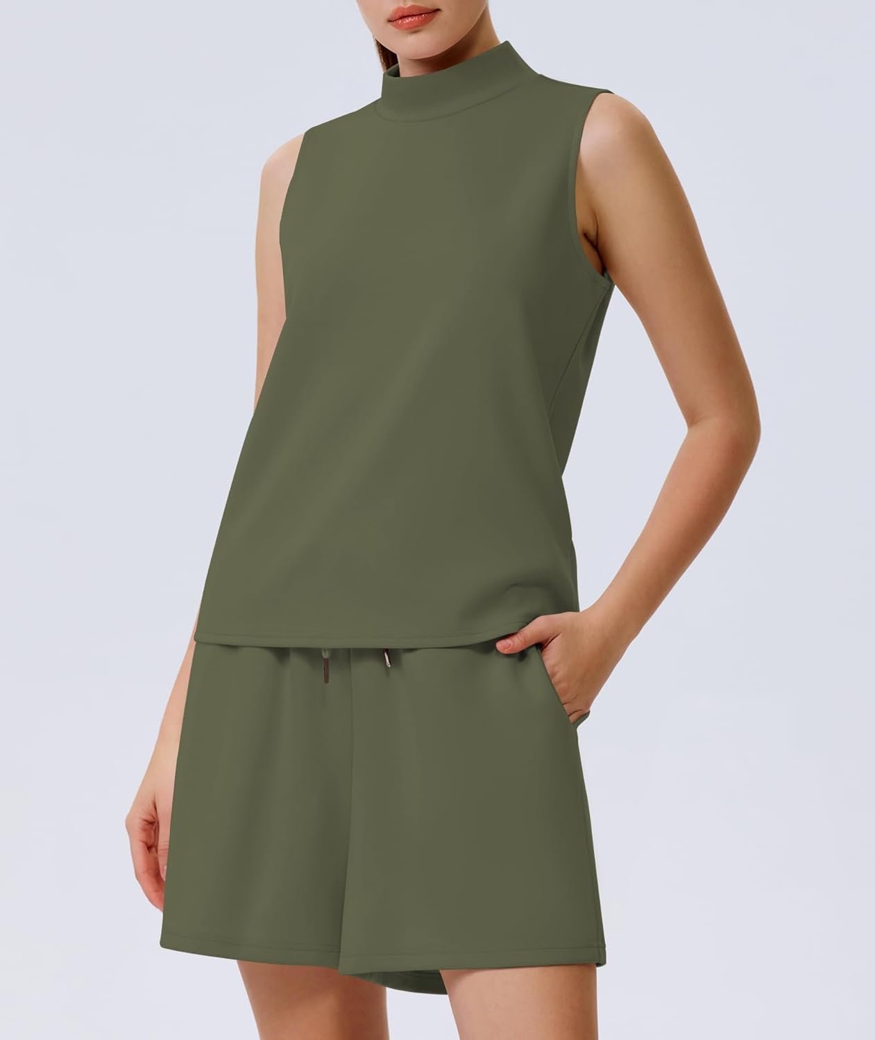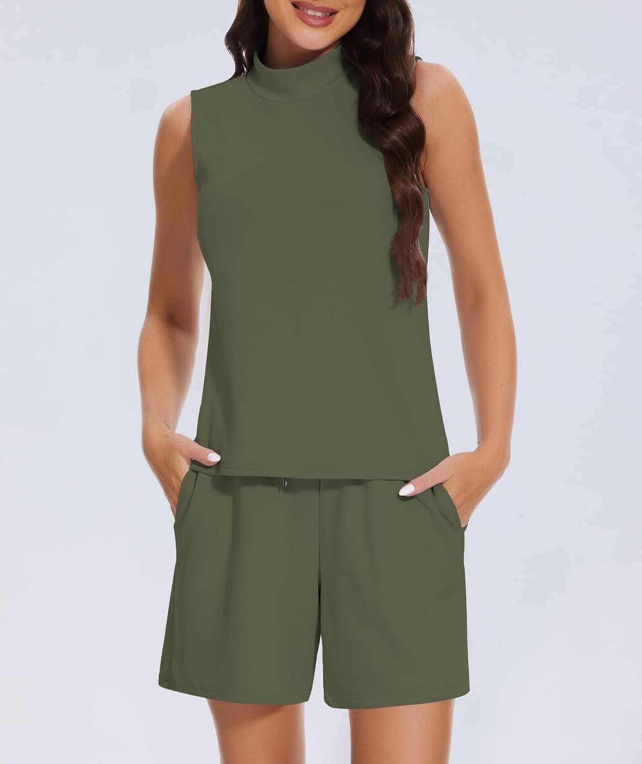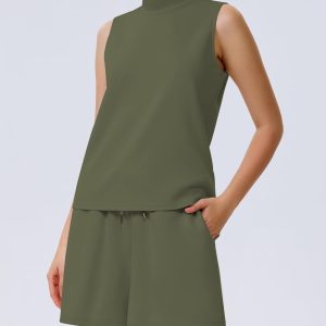 Women’s Summer 2 Piece Outfits Mock Neck Tank Top High Waisted Shorts Lounge Sets 2024 Fashion Tracksuit