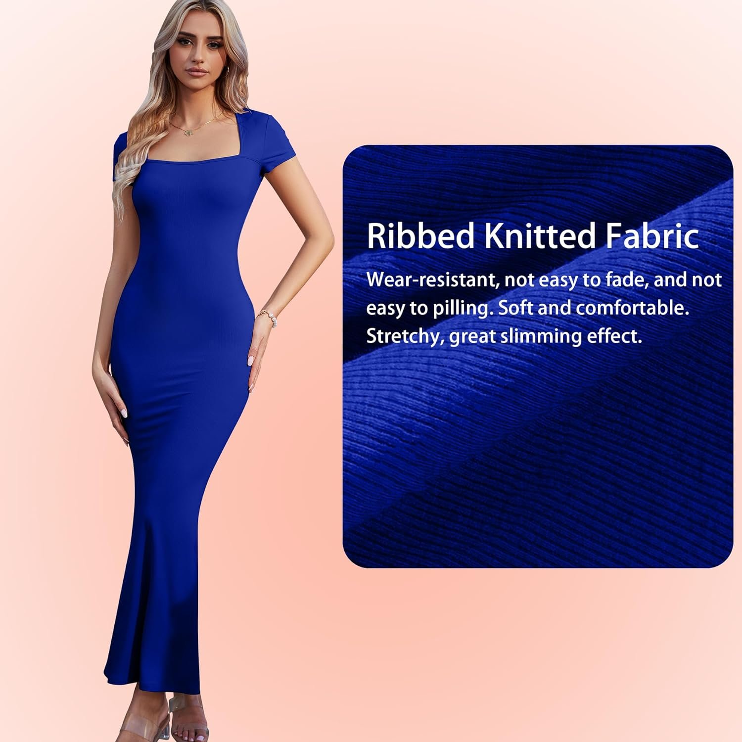 Women’s Summer Casual Bodycon Maxi Dress Square Neck Short Sleeve Ribbed Dresses Cocktail Long Dress