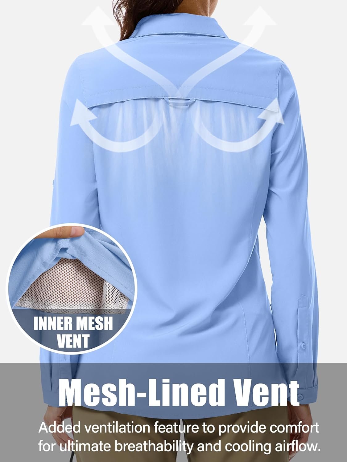 Womens Sun Protection Safari Shirt Quick Dry SPF 50 UV Lightweight Fishing Travel Hiking Outdoor Shirts with Zipper Pockets