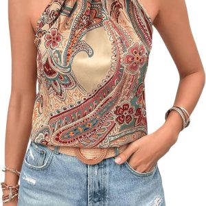 Be the first to review “Women’s Tropical Paisley Print Halter Blouse Sleeveless Boho Shirt Tops Button Back Vacation Tops”